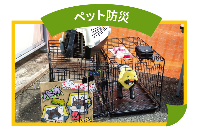 同行避難したペットの飼育場所となるテント・ゲージの展示などを行います。ブースにお越しの方にはペットグッズをプレゼント!(数量限定/なくなり次第終了)また、飼い主さんがブースを回れるようペットの一時預かりも実施しています。