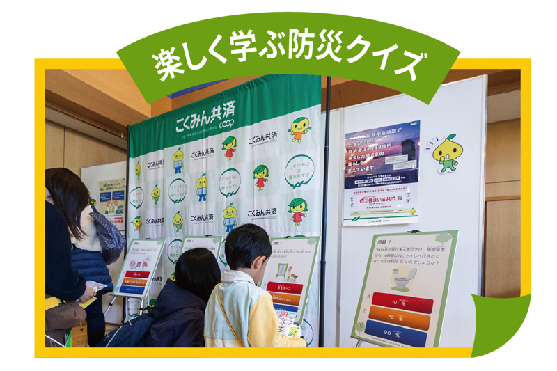 親子で楽しく防災の知識を身につけられる「防災クイズ」コーナー。すべての問題をクリアして、景品をゲットしよう!