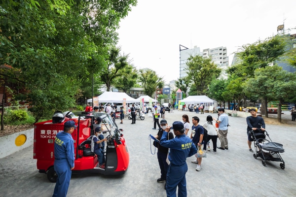 さらに、地域の自主防災会や消防署・消防団、各企業団体の協力のもと、初期消火訓練や非常用トイレ展示など、実践的なプログラムが多数行われました。