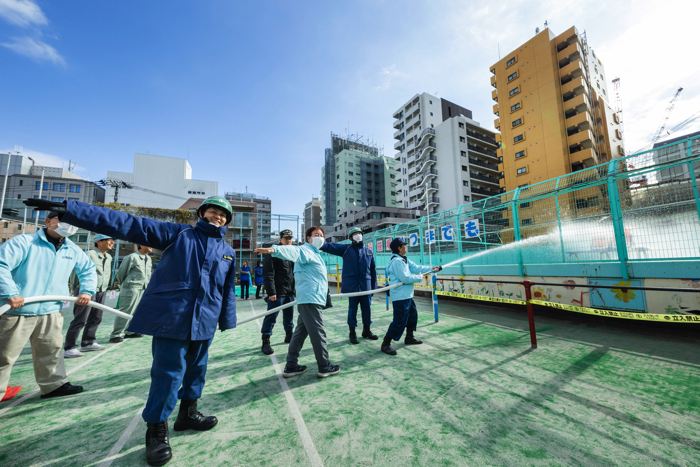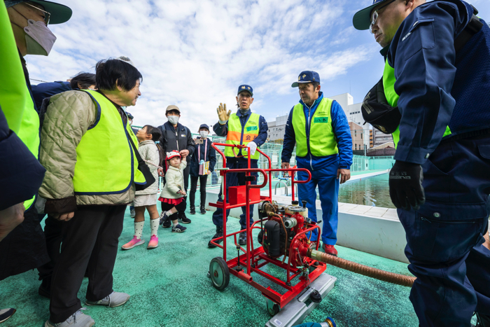 会場では、笹塚・幡ヶ谷地区自主防災会による「まちかど防災訓練」を実施。D級ポンプやスタンドパイプの操作体験、避難所運営委員会による実地確認など、地域に根ざした防災活動を間近で見ることができました。